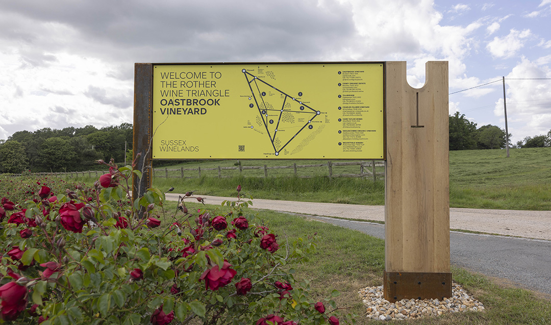 Designed to enhance wine tourism in the region, the pilot includes new wayfinding signage and orientation points that connect seven award-winning vineyards that fall between the triangular points made geographically between Rye, Hastings and Flimwell, in the Rother Valley region of East Sussex.